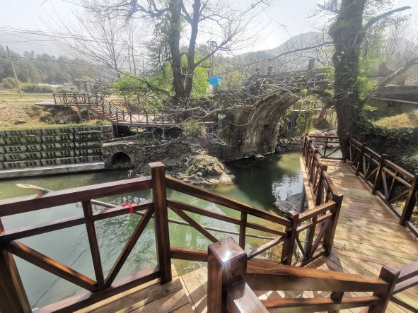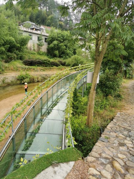 安吉潤達旅游資源開發有限公司章村鎮郎村村畬鄉高空玻璃滑道位于浙江省湖州市安吉縣章村鎮郎村村,安吉潤達旅游資源開發有限公司為該章村鎮郎村村畬鄉高空玻璃滑道的運營單位 運營單位安吉潤達旅游資源開發有限公司,于2019年12月20日在安吉縣市場監督管理局登記成立,法定代表人為吳俊,注冊地址位于浙江省湖州市安吉縣章村鎮郎村村,主要經營范圍為旅游景區開發、建設、經營;漂流服務;旅游景區規劃、設計;景區游覽服務;工藝品制造及銷售,初級食用農產品銷售。 章村鎮郎村村畬鄉高空玻璃滑道經過安吉縣發展和改革局備案(項目代碼2019-330523-90-03-825422)。 項目前期進行了可行性研究,委托資質單位進行了地質勘探,出具了巖土工程勘探報告,滑道進行了設計圖設計。 該高空玻璃滑道項目2020年底項目施工完成,建設玻璃滑道總長1041.4米,寬2米,總落差60米,混凝土現澆基礎,上站修建100㎡蓄水池,250㎡的起漂平臺,滑道中段建設250㎡過渡水池。雙排鋼結構直徑 140—165熱鍍鋅圓管,底玻璃長1.22米,寬1.2米,側玻璃長1.2米,寬0.6米,玻璃上方安裝63不銹鋼護欄,上站碼頭建設長82.54米左右,寬2米的游步道。 項目建成后由于景區升級,從滑道800米處改道入河,增加一段河道漂流至接待中心水域,增建一個下碼頭。河道漂流長度約500m。 改造項目2021年8月開始施工,該項目目前已施工完成。