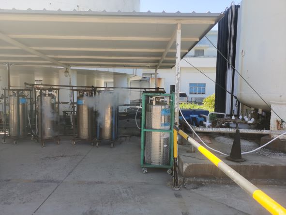 舟山億洋氣體有限公司(以下簡稱“舟山億洋”)成立于200311月,主要從事工業氣體充裝、儲存經營,廠區設有氧氣、氮氣、氬氣、二氧化碳儲存及充裝設施。于202076日取得舟山市定海區應急管理局頒發的《危險化學品經營許可證》,編號:定應急危經字[2020]0019。許可范圍:*儲罐區:氧[液化的]50立方米儲罐1個)、氮[液化的]20立方米儲罐1個)、氬[液化的]20立方米儲罐1個)、二氧化碳[液化的]50立方米儲罐1個、30立方米儲罐1個),充裝間:氧[壓縮的]1.2t、氮[壓縮的]0.27t、氬[壓縮的]0.5t、二氧化碳[液化的]1t*年充裝:氧[壓縮的]28萬瓶、氮[壓縮的]5萬瓶、氬[壓縮的]1.5萬瓶、二氧化碳[液化的]2萬瓶。有效期至202376日。
