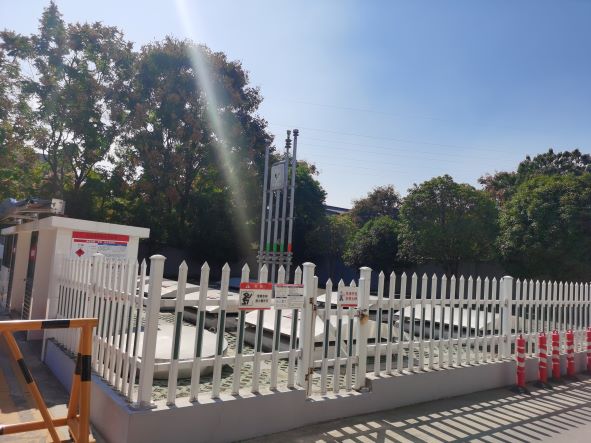 加油區設置加油罩棚,罩棚下設置2臺三油品六槍潛油式加油機(92#、95#、98#)和2臺雙油品四槍加油機(92#、95#和92#、0#);埋地罐區設有3個容量為30m3的92#、95#、98#埋地臥式SF型雙層汽油罐,1個容量為30m3的0#埋地臥式SF型雙層柴油罐,折算后油罐總容積105m3(柴油罐折半計入),依據《汽車加油加氣加氫站技術標準》GB50156-2021第3.0.9條辨識,該站屬于二級加油站。加油站已安裝汽油卸油和加油油氣回收系統。