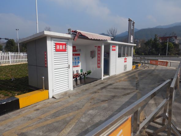 站區(qū)加油罩棚下設(shè)7座加油島(加油島上設(shè)置4臺三油品六槍潛油泵式稅控加油機(jī)和2臺三槍柴液一體機(jī)(兩槍加注柴油,一槍加注尿素液)以及1臺尿素溶液儲液箱)。埋地油罐區(qū)設(shè)5只埋地SF內(nèi)鋼外玻璃纖維增強(qiáng)塑料雙層油罐(非車道罐),其中4只30m³的SF雙層復(fù)合汽油罐(分別為2只92#汽油罐,1只95#汽油罐和1只98#汽油罐),1只50m³的SF雙層復(fù)合柴油罐1只(儲存0#柴油),折算后油罐總?cè)莘e145m³(柴油罐容積折半計入),根據(jù)《汽車加油加氣加氫站技術(shù)標(biāo)準(zhǔn)》GB50156-2021規(guī)定的等級劃分,該加油站為二級加油站。