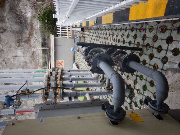 加油站安裝有汽油卸油和加油油氣回收系統以及三次油氣回收系統。加油區設置加油罩棚,罩棚頂部為輕鋼結構。罩棚下設置4臺雙油品四槍潛油泵式加油機(汽油加油槍帶油氣回收)和1臺尿素液加注機;埋地油罐區設有5只30 m³埋地臥式SF雙層油罐(非車道罐),其中30 m³埋地臥式汽油罐4只(92#汽油罐2只、95#汽油罐1只、98#汽油罐1只),30m³埋地臥式柴油罐1只,油罐總容積折算為135m³(柴油罐折半計入),根據《汽車加油加氣加氫站技術標準》GB50156-2021的相關規定,該加油站為二級加油站。