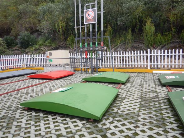 加油站設置汽油卸油和加油油氣回收系統以及三次油氣回收系統。加油區設置加油罩棚,罩棚頂部為輕鋼結構。罩棚下設置2臺雙油品四槍和2臺三油品六槍潛油泵式加油機(汽油加油槍帶油氣回收)和1臺尿素液加注機;埋地油罐區設有4埋地臥SF雙層油罐(非車道罐),其中40 m³埋地臥式汽油罐1只(存放92#汽油),30 m³埋地臥式汽油罐2只(分別存放95#汽油和98#汽油),20m³埋地臥式柴油罐1只,油罐總容積折算為110m³(柴油罐折半計入),根據《汽車加油加氣加氫站技術標準》GB50156-2021的相關規定,該加油站為二級加油站。